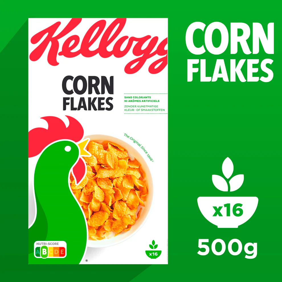 So knuspert nur das Original! Kellogg's® Corn Flakes, das sind unschlagbar knusprige Flakes aus sonnenverwöhntem Mais. Mit der ganzen Vielfalt, die leckeres Getreide zusammen mit Milch oder Joghurt und Früchten zu bieten hat, sind sie ein guter Start in den Tag.